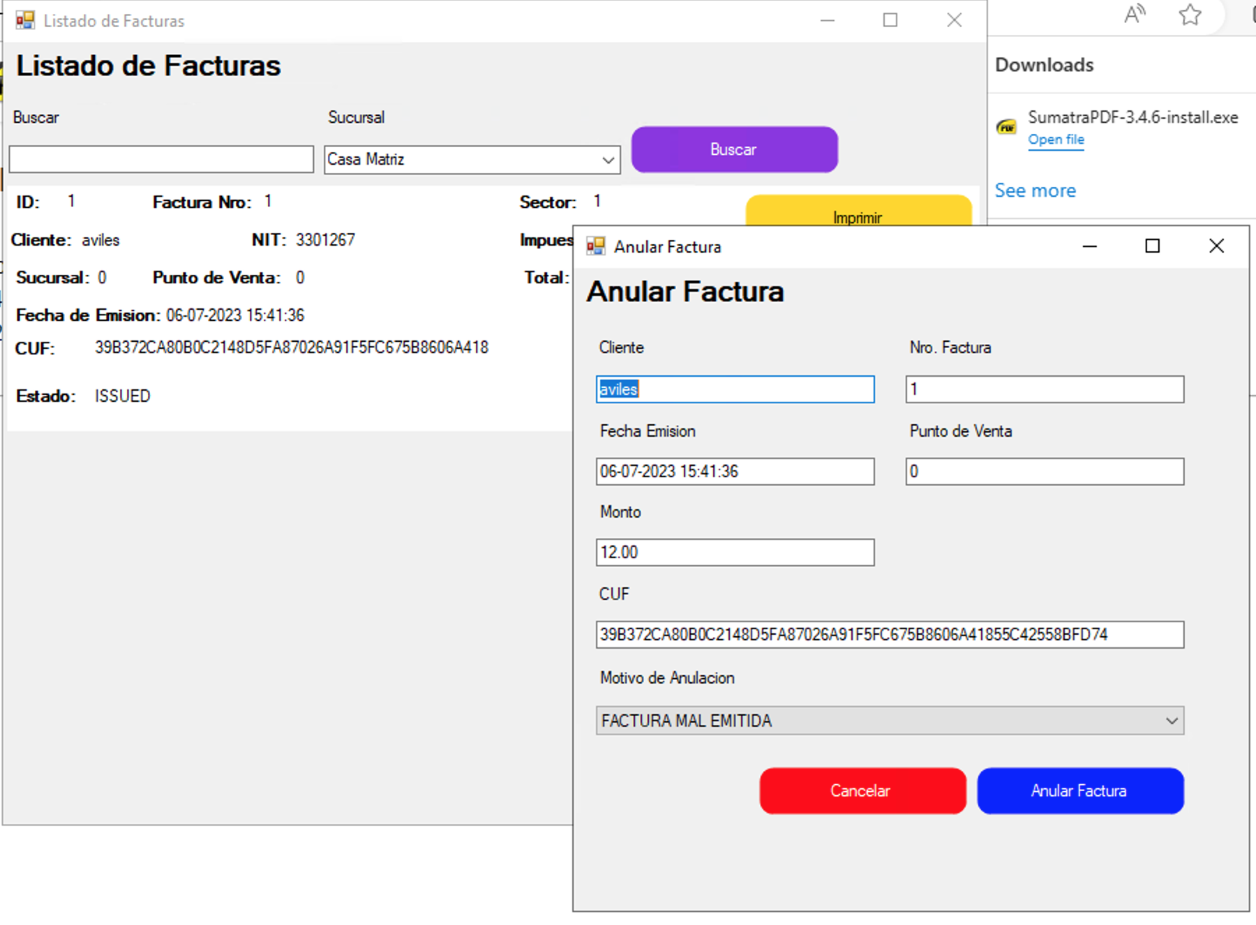 Libreria de Facturacion Electronica SIAT - Windows Forms