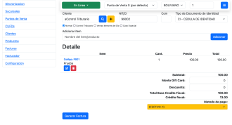 - Interface para la creacion y emision de facturas en linea y fuera de linea