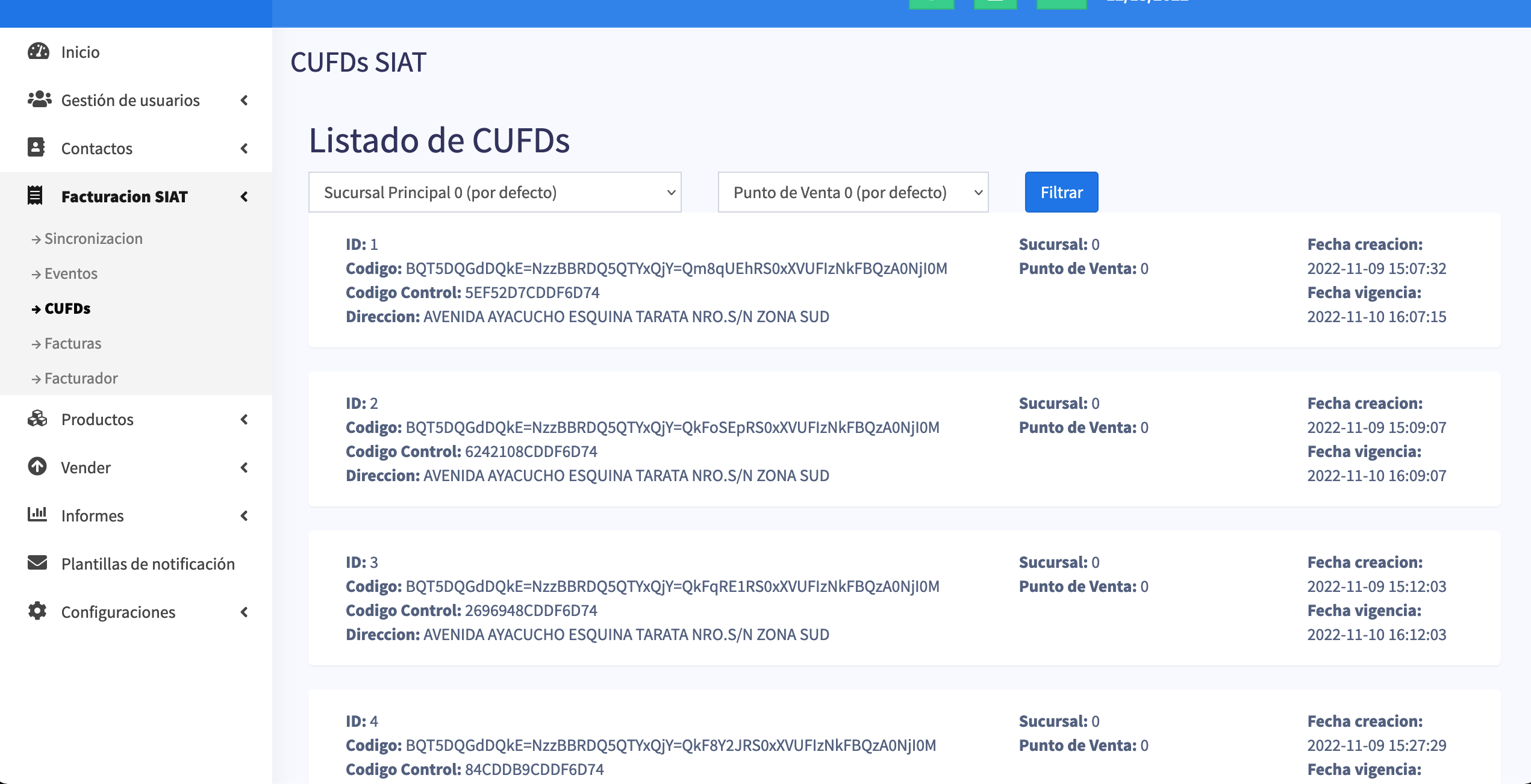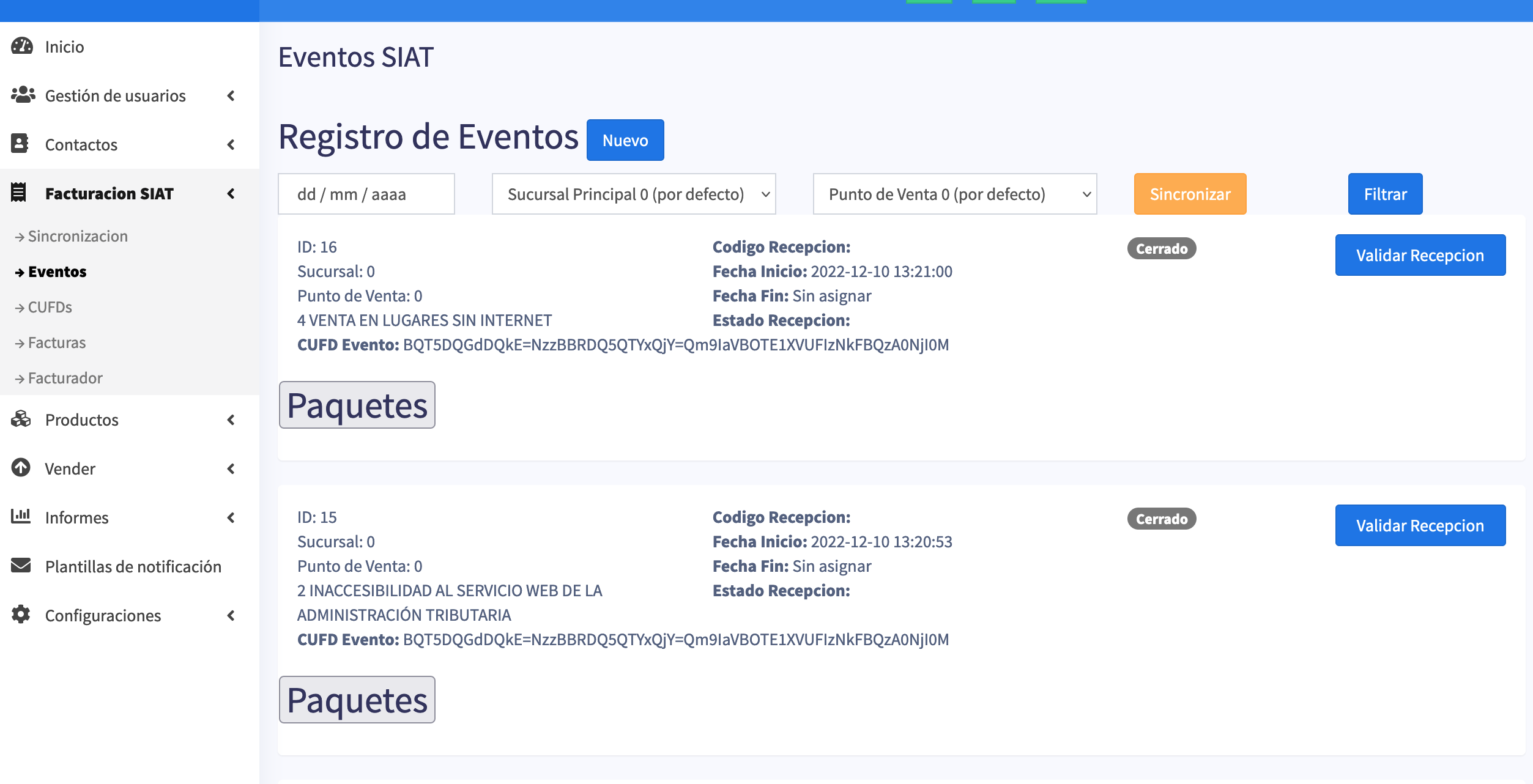 Interface de Facturación SIAT lista para facturar