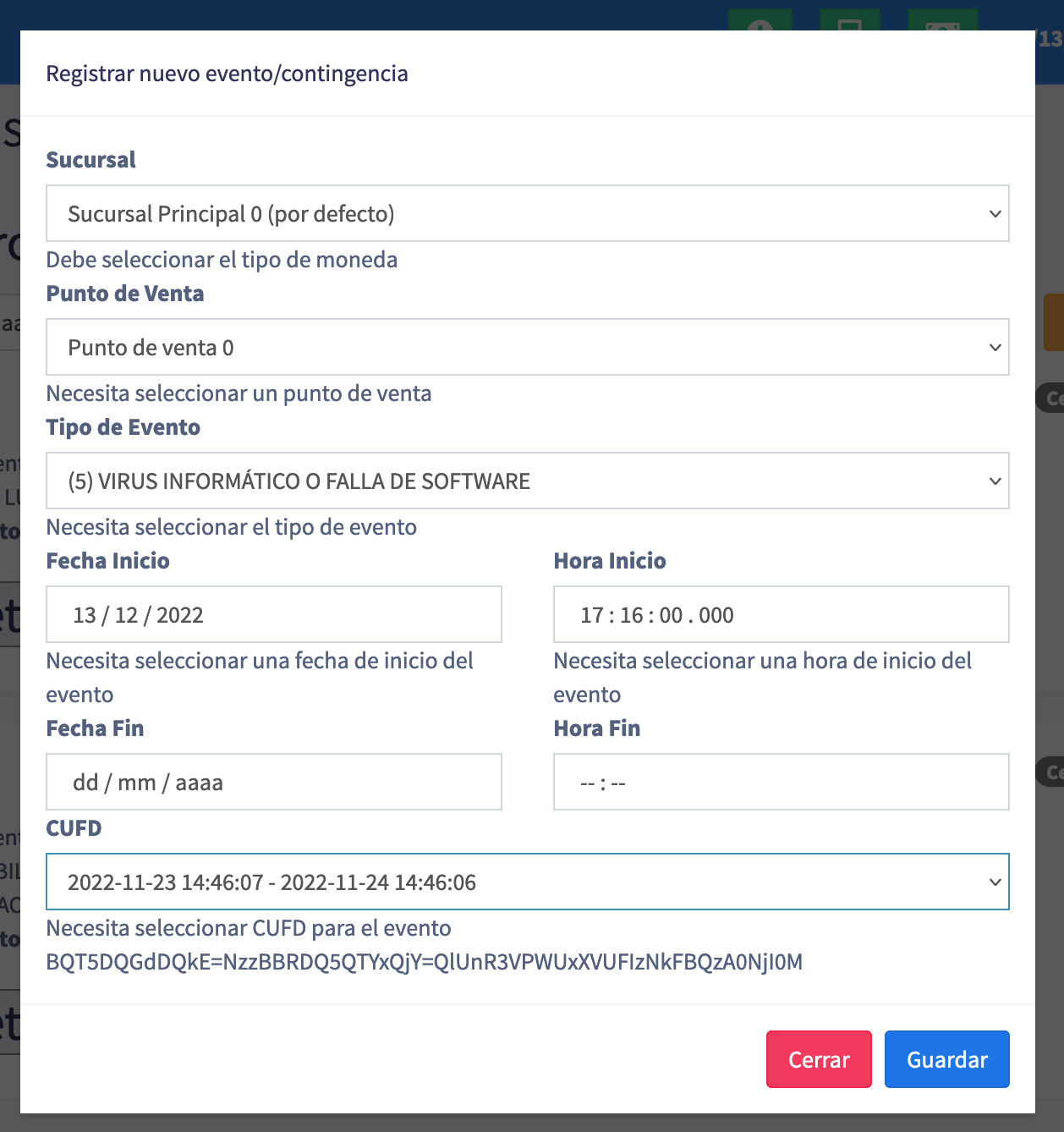 - Creacion de eventos de contingencia y significativos