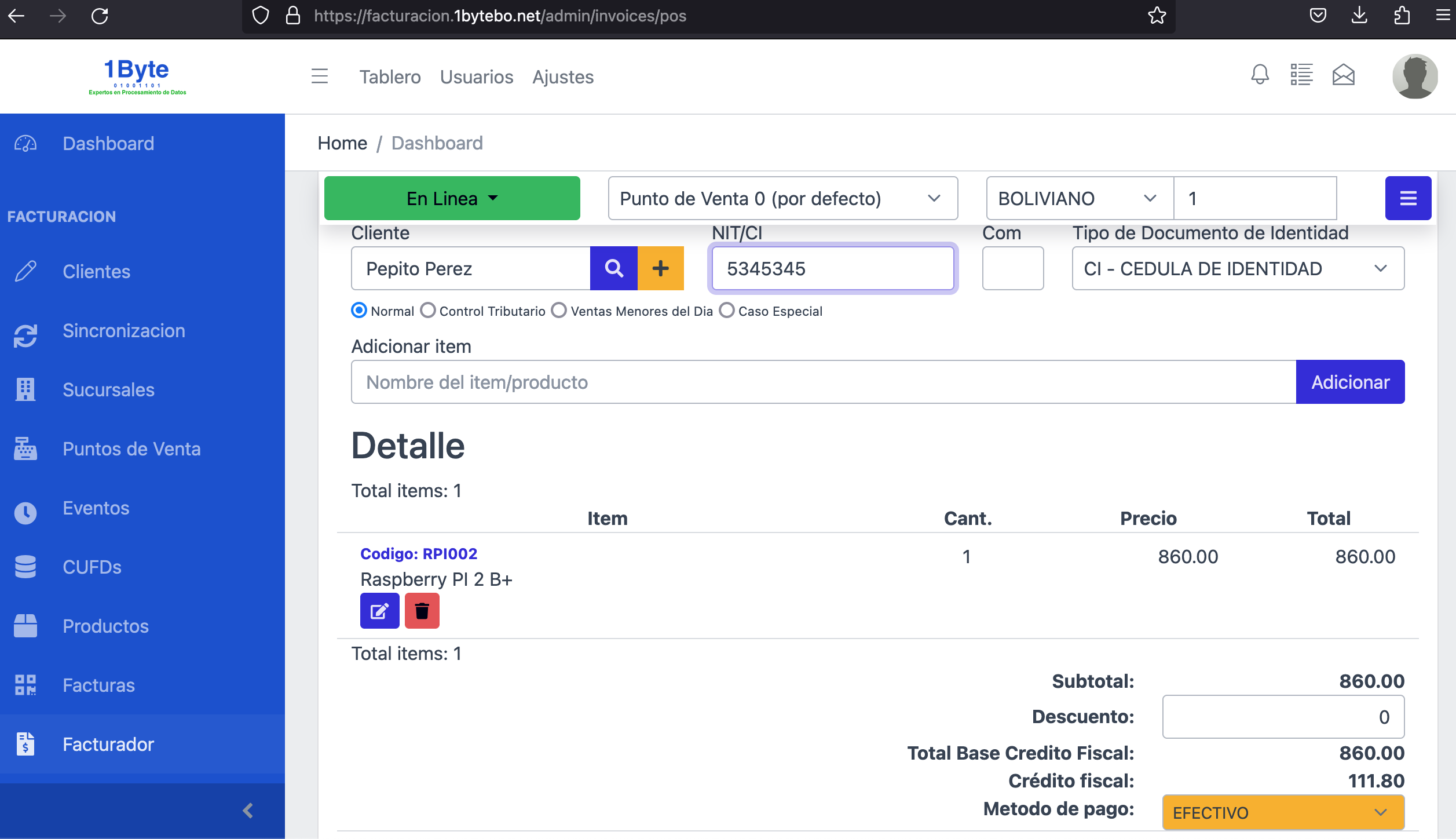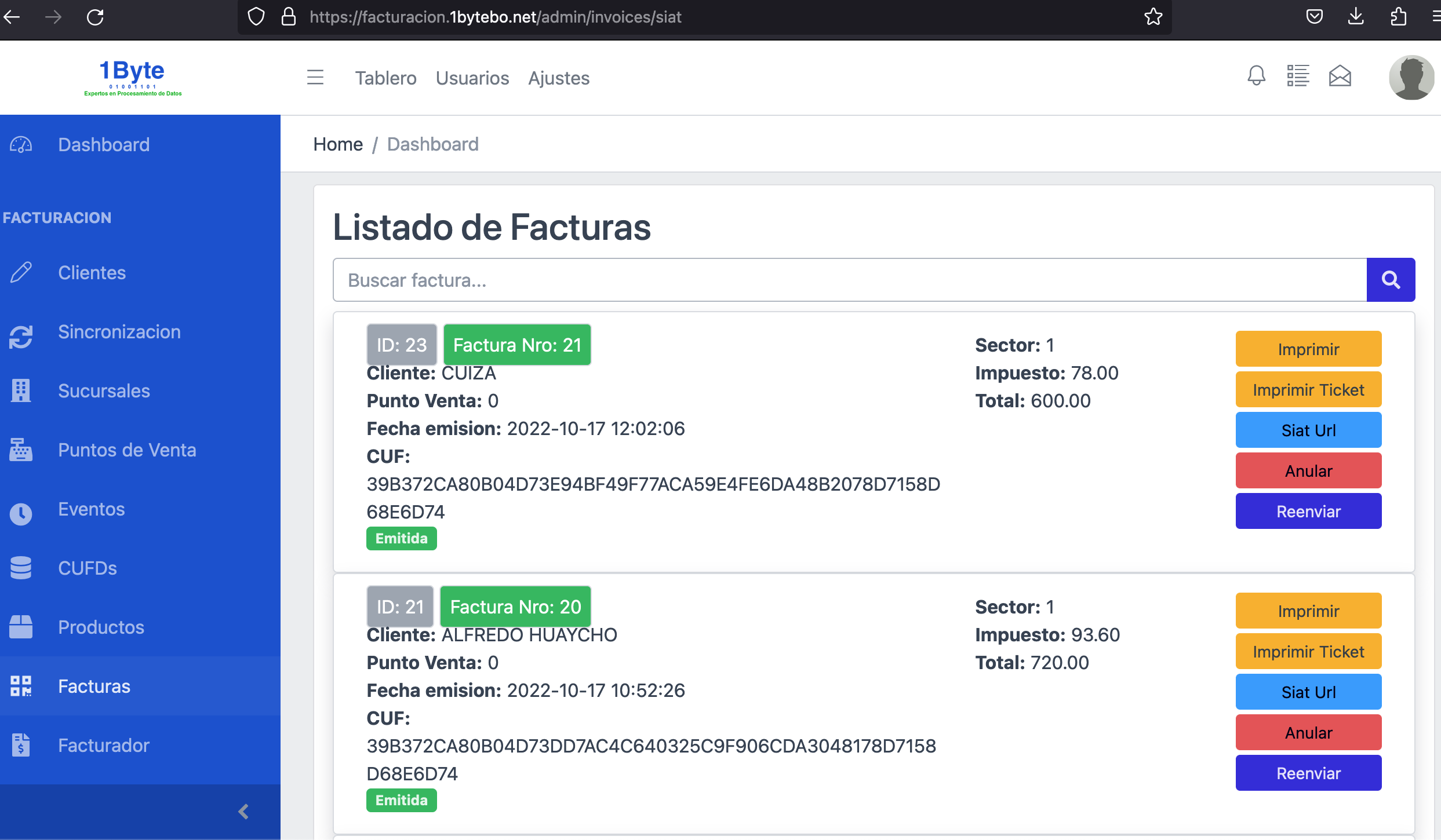 El servidor le permite generar facturas para el nuevo sistema de facturación SIAT v2.
