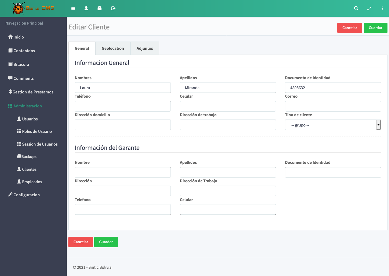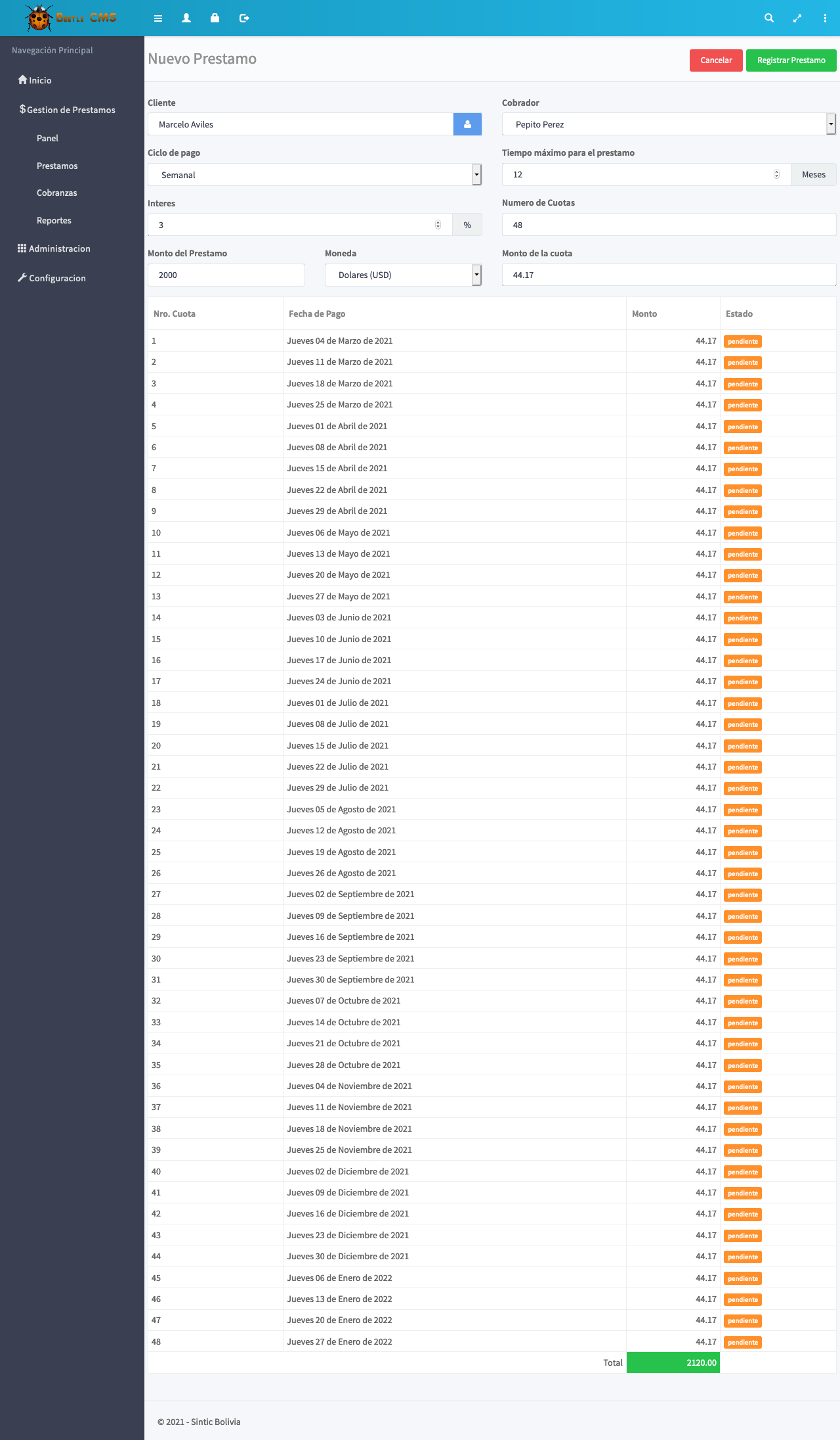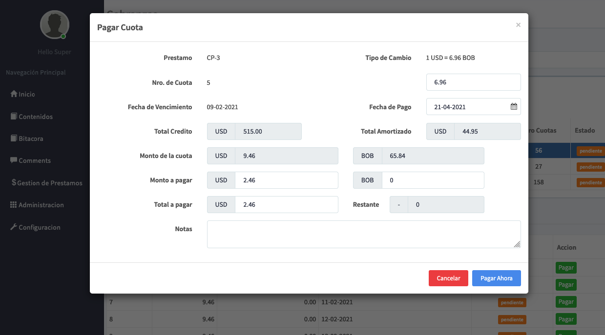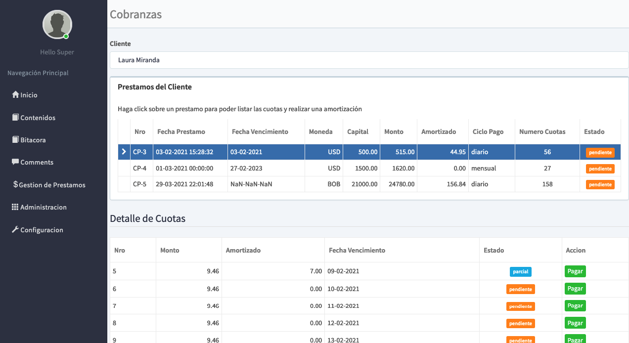 Cuenta con una interfaz amigable, practica, diseño agradable y fácil de usar. Nuestro sistema no tiene limitaciones de ningun tipo, puede crear y gestionar los creditos ilimitadamente.